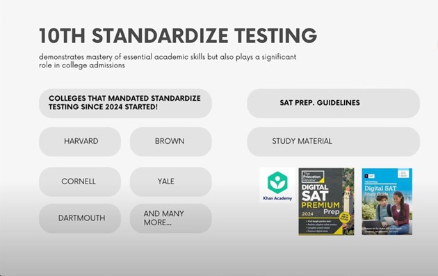 - In Class 10, begin preparing for the SAT or ACT.