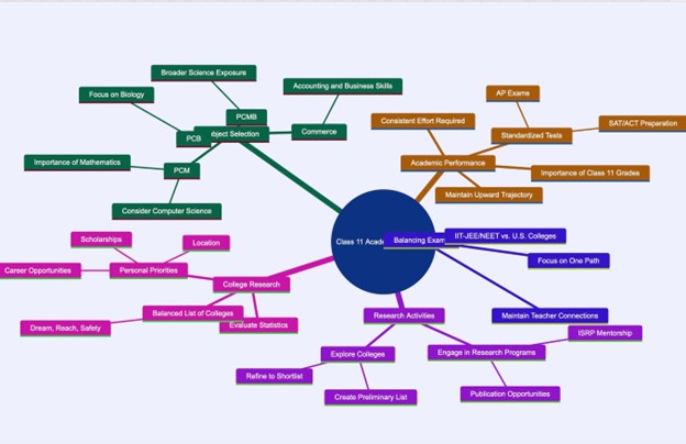 - Start exploring potential colleges and majors during class 11; utilize resources like college websites and platforms such as LinkedIn.